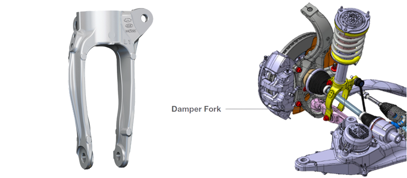 전륜 Suspension을 구성하는 부품으로 차량 하중을 지지하고 주행 중 노면으로부터 입력되는 하중 및 충격을 Shock absorber에 전달하여 차량 승차감을 확보하는 기능을 수행