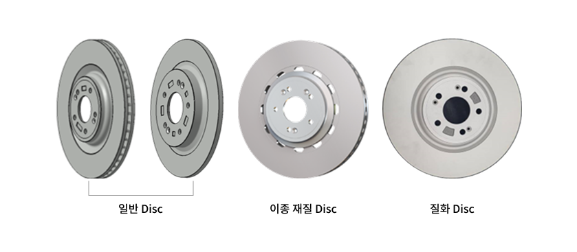 이종 (異種)재질 Disc : 주철과 알루미늄 재질을 이종 (異種) 접합 경량화 (제네시스 및 고성능 차량 적용)