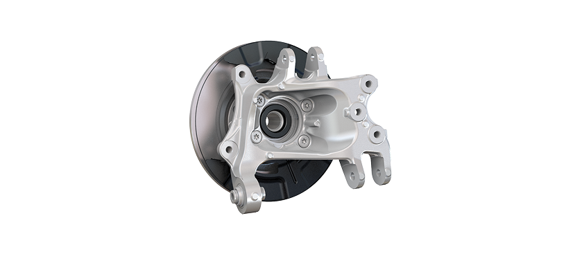 후륜 Suspension을 구성하는 부품으로 주변 기능 부품들의 장착점을 제공하여 차량 하중 지지, 진동/충격 흡수 (각종 Arm류), 제동 (Caliper, Disc), 휠 측으로의 동력 전달 (H/Shaft, W/Bearing) 및 Wheel speed 감지 기능을 수행